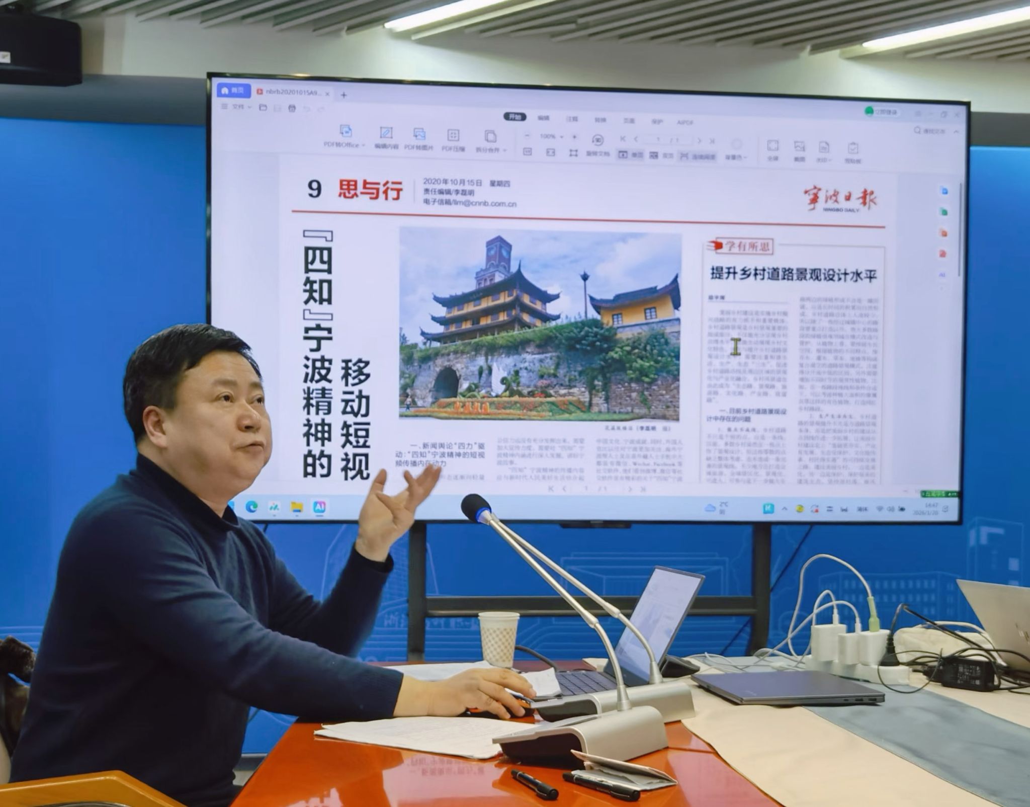 李老师结合自身丰富的实践经验与深刻的理论见解,介绍了当前《宁波日报》理论版面的情况。他强调,要站在“国家所需、宁波所能、群众所盼、未来所向”的高度去观察和分析真问题。之后,他从以下六个方面,结合案例作了详细解读,即“围绕中心、服务大局”“深入实际、多接地气”“突出问题、把握四性”“凝聚智慧、综合施策”“注重特色、精准发力”“发挥瞭望与预警作用”等方面。他还分享了“学问工作化,工作学问化”的工作理念,鼓励教师开展跨学科协作、深入实地调研,以“真热爱、练内功、重积累、懂写作”来不断提升能力。