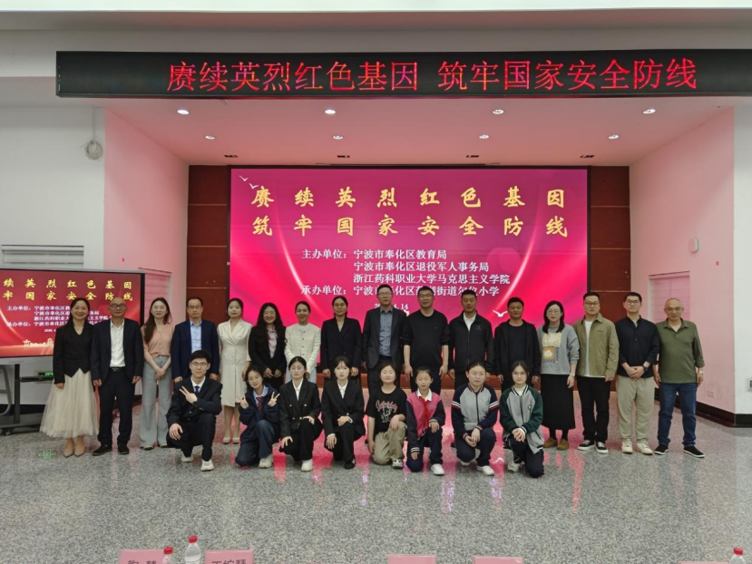 4月14日下午,在第11个全民国家安全教育日即将来临之际,浙江药科职业大学马克思主义学院联合奉化区教育局、奉化区退役军人事务局、尔仪小学、莼湖小学、莼湖中学、奉化二中等四所中小学,携手开展了“赓续英烈红色基因筑牢国家安全防线”大中小学国家安全教育一体化主题活动。本次活动将国家安全教育与英烈精神教育深度融合,以实景教学、现场感悟、精神洗礼推动“大思政课”入脑入心,取得良好成效。
